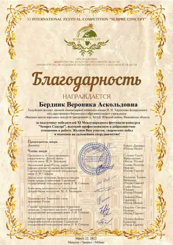 В институте осуществляется обучение по специальности 54.02.02 Декоративно-прикладное искусство и народные промыслы (по видам: лаковая миниатюрная живопись, художественная вышивка). По окончании обучения выпускникам присваивается квалификация Художник народных художественных промыслов.